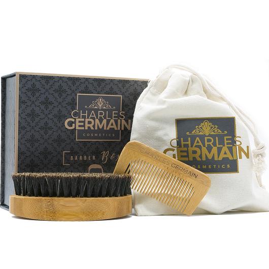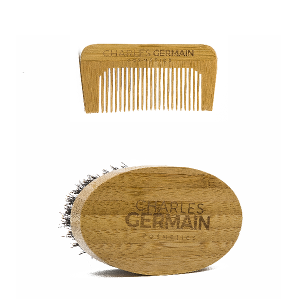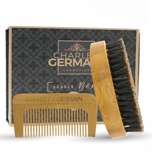 Nous croyons que chaque homme barbu mérite un produit d'entretien et de soins haut de gamme. Charles Germain Cosmetics a concocté spécialement pour vous, messieurs, une brosse à barbe 100% poils de sanglier, un peigne à barbe et moustache combiner en un seul kit brosse et peigne pour l'entretien de votre barbe.