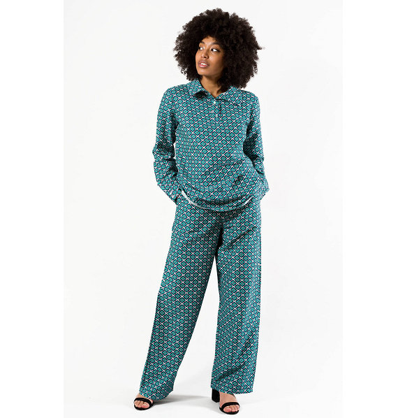 Coupe : chemisier coupe légère et facile, pantalon à coupe étroite,