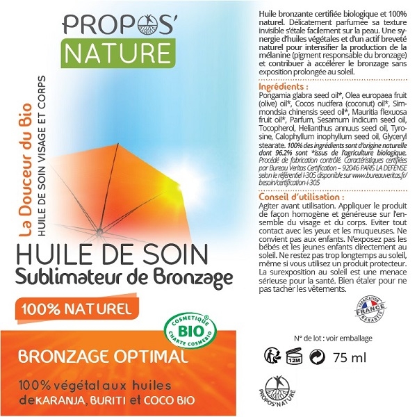DÉCOUVREZ L'HUILE BRONZANTE CERTIFIÉE BIOLOGIQUE ET 100% NATURELLE