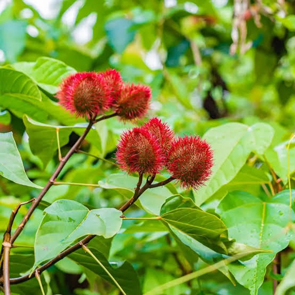 ROUCOU : Ses graines sont riches en bêta-carotène, elles stimulent la mélanine et donne à la peau un éclat naturel et uniforme. Le Roucou a des bienfaits apaisants et réparateurs.